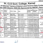 Our Students of B.Sc got 1st and 4th position in District Level Science Quiz contest held at Pt. CLS Govt. College Karnal on Sep 12, 2025. (Sponsored by HSCST, Punchkula)