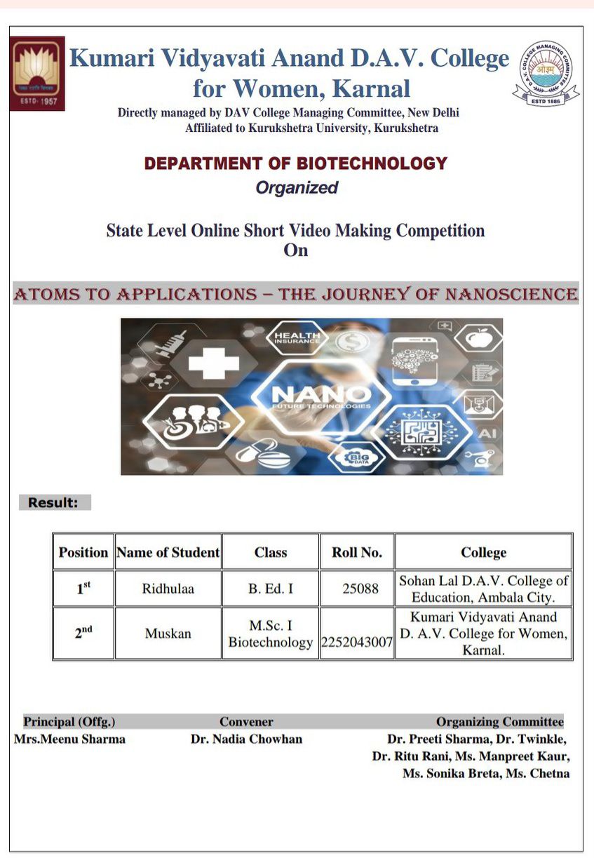 Two Students Janvi (B.Sc 5th Sem) and Siya(BCA 5th sem) Secure 2nd and 3rd positions respectively in District Level Science Essay Writing Competition organised by Dyal Singh College Karnal on Sept 20, 2025. |