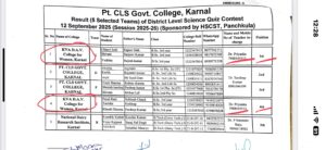 B.Sc students secured 1st & 4th positions in the District Level Science Quiz at Pt. C.L.S. Govt. College, Karnal on Sept 12, 2025 (HSCST, Panchkula) |