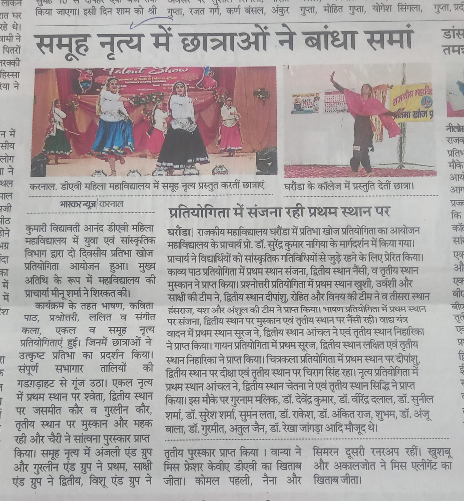 Talent Show is organised in college by Youth and Cultural Affair Society and Sponsored by Department of Youth and Cultural Affairs (Kurukshetra University, Kurukshetra) on September 27-28,2024.