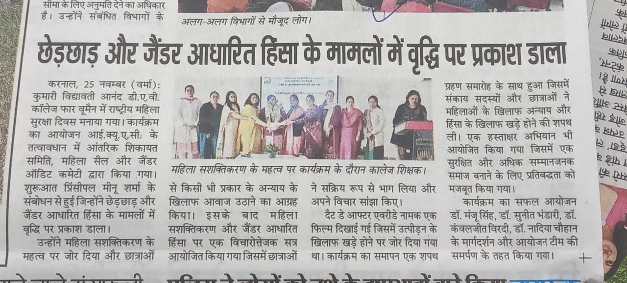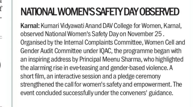 Celebration of National Women Safety Day on Nov. 25, 2025