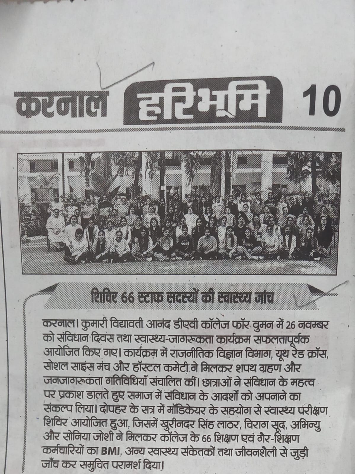Youth Red Cross and Hostel Committee organised a Health and Awareness Camp by Medicare Pvt. Ltd. for Teaching and Non-Teaching Staff on Nov. 26, 2025.