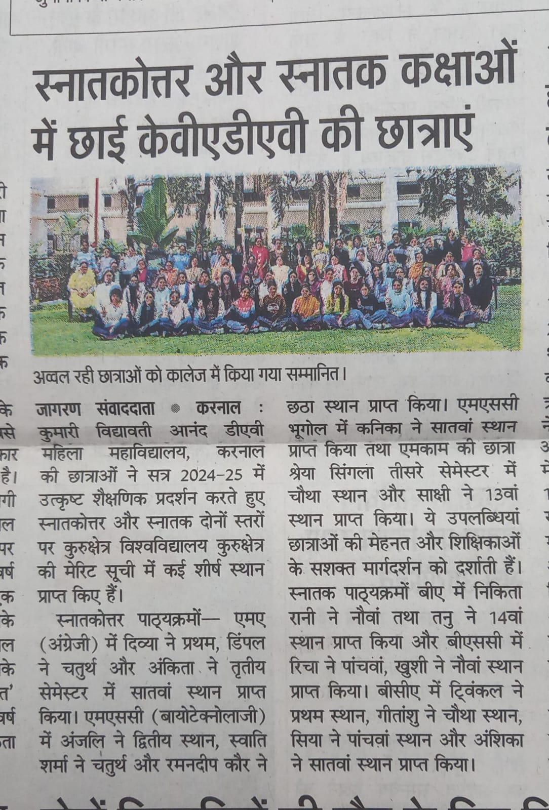 Welcome to Kumari Vidyavati Anand D.A.V College for Women