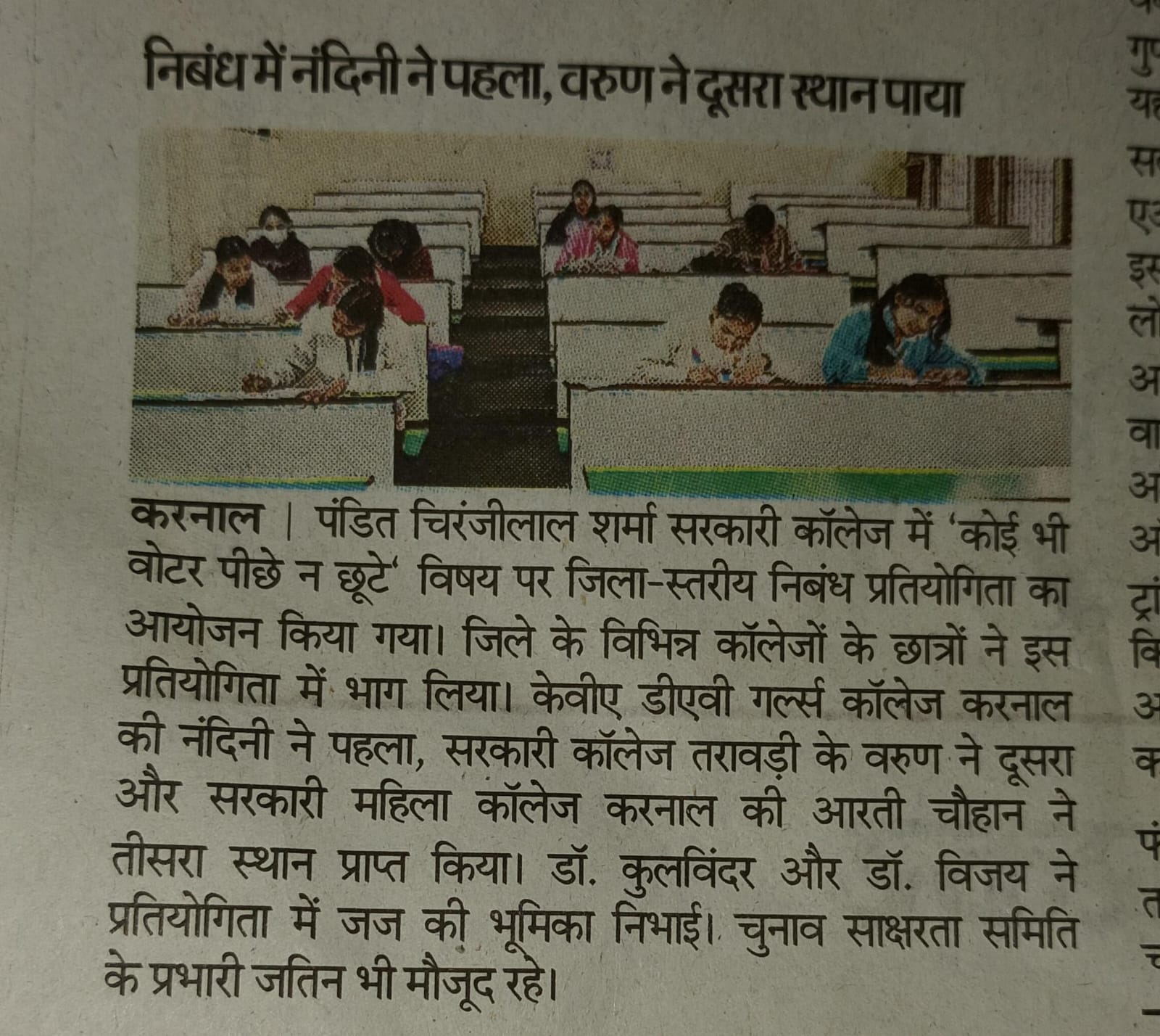 The winners were: 1st position: Manvi Malik B.Sc (PS) 1st year 2nd position: Palak Choudhary –B.Sc (LS) 1st year 3rd position: Shallu -BCA 1st year The activity was a fruitful and enthusiastic effort for all participants.