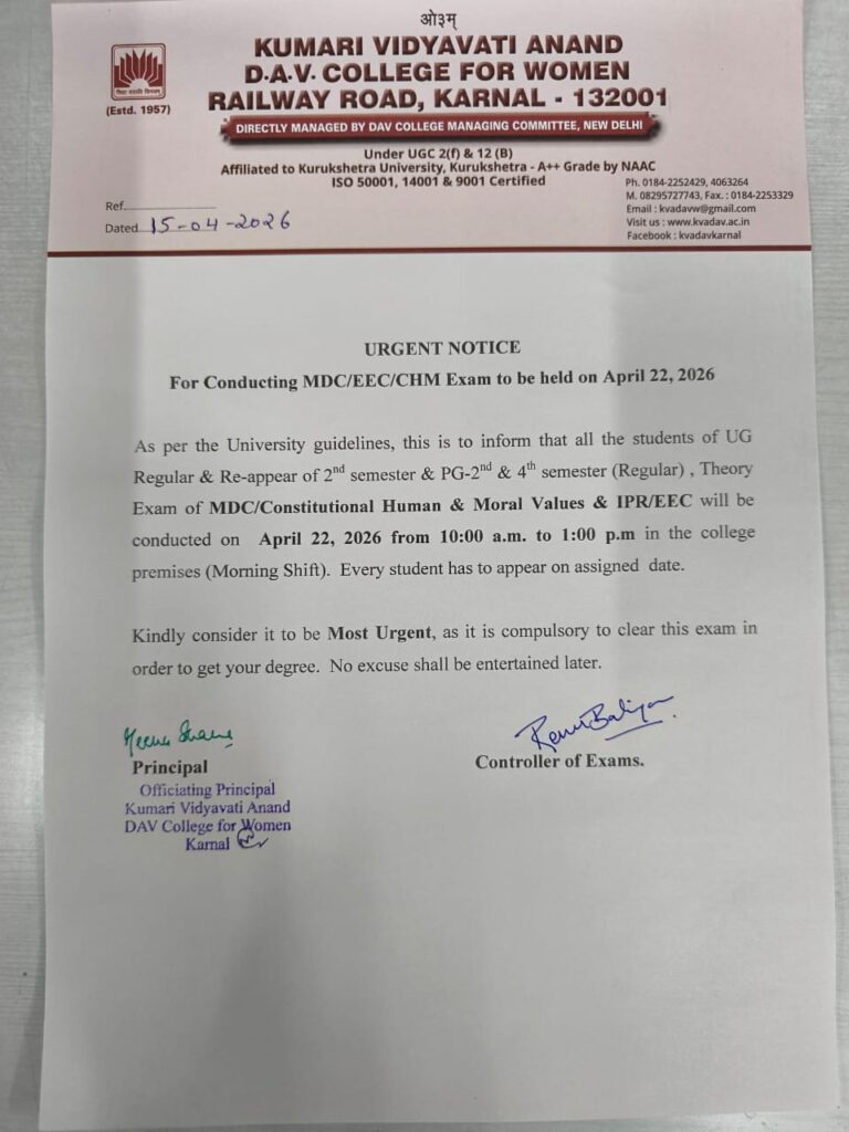 Welcome to Kumari Vidyavati Anand D.A.V College for Women