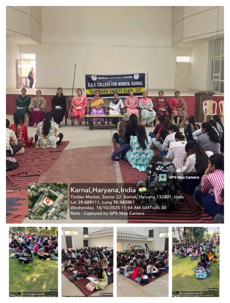 Road Safety Quiz was organised by the Road Safety Club at Kumari Vidyavati Anand DAV College, Karnal on October 15, 2025.