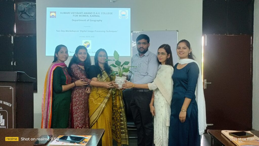 The Department of Geography organized a two-day workshop on “Digital Image Processing Techniques”on October 08–09, 2025 in collaboration with D.A.V. (PG) College, Karnal.